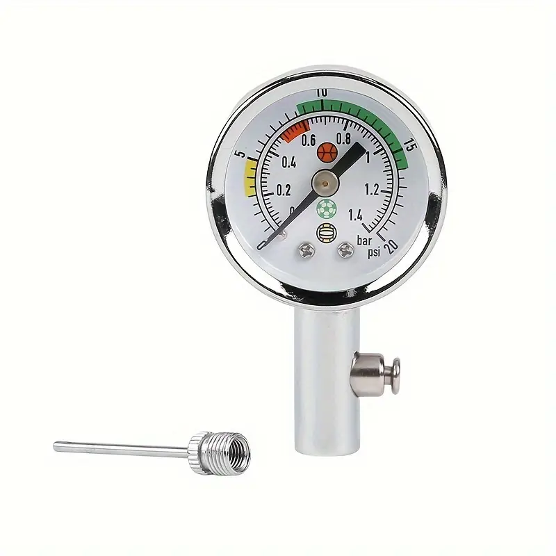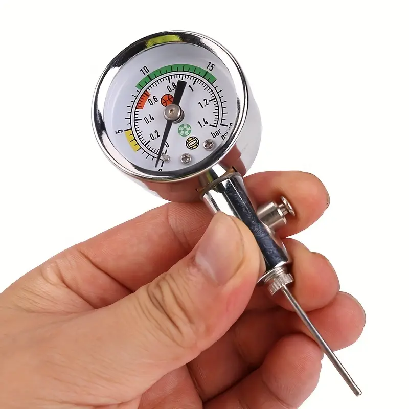 اختر أداة موثوقة للحفاظ على الضغط المثالي لكراتك! تم تصميم هذا المقياس ذو الإبرة لقياس ضغط الهواء بدقة في كرات كرة القدم وكرة السلة وكرة الطائرة. مصنوع من المعدن المتين، فهو دقيق وموثوق. مع حقيبته الجلدية العملية، يمكنك اصطحابه معك في كل مكان سواء للتدريب أو للمسابقات.